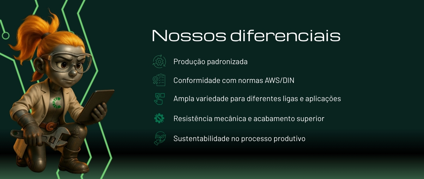 Nossa história se apoia em três pilares: criação técnica, conhecimento aprofundado e cuidado com o cliente. Por isso investimos em processos padronizados, melhoria contínua e formulações precisas, sempre em conformidade com as normas AWS e DIN. Essa disciplina operacional, somada à nossa estrutura ampla e moderna, nos dá autonomia para produzir eletrodos para diferentes aplicações e garantir desempenho uniforme, lote a lote.